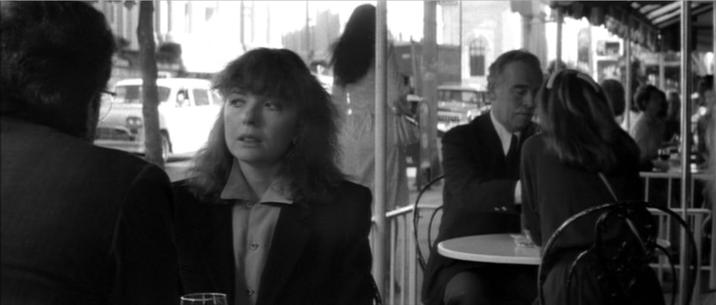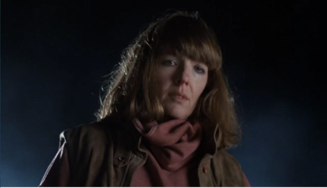 When she makes a gesture of anger here, whether it’s flipping her hair behind her ear or taking a Bette Davis-like puff on a cigarette and sitting decisively on the stairs of her house, Keaton can fill her whole body with emotion and blast it out to us. The scene where Finney and Keaton argue in a restaurant marks a strange shift in tone in Shoot the Moon, accompanied by a much speedier, surface delivery by Keaton that’s more like Luna in Sleeper and Sonja in Love and Death than Faith, but she is back on firm ground in the uncompromisingly rough closing scenes.
