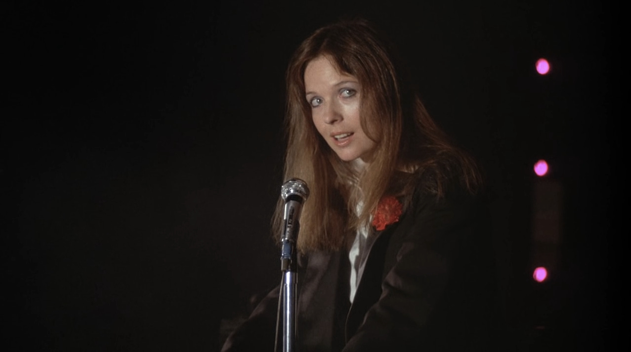 Alvy says that Annie is great sexually because she’s “polymorphously perverse,” alive to pleasure, but she’s a pot smoker who needs to smoke up before going to bed with him. Alvy pushes her to take college courses to get her up to speed for the intellectual Upper West Side of Manhattan, and under his influence she grows more poised and reflective, singing “Seems Like Old Times” in a nightclub in a high, small, sweet voice, so that the sincerity of her delivery stops the movie cold.